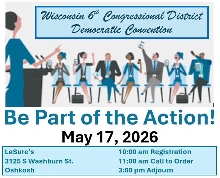 Help elect democratic Lawmakers, as well as shape the positions and future of our party. Learn about the efforts of the Sixth Congressional District Committee and Democratic Party of Wisconsin (WisDems) to make the government work for ALL THE PEOPLE.